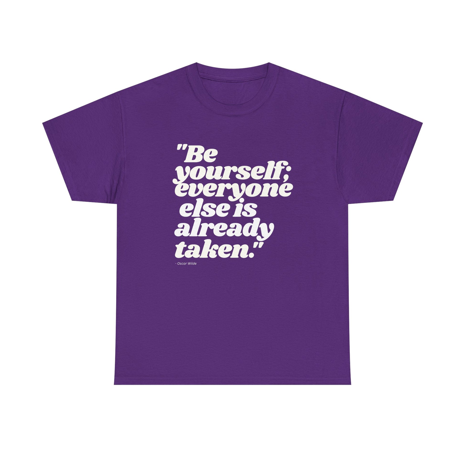 This stylish tee encourages individuality with its inspiring quote, 'Be yourself; everyone else is already taken.'