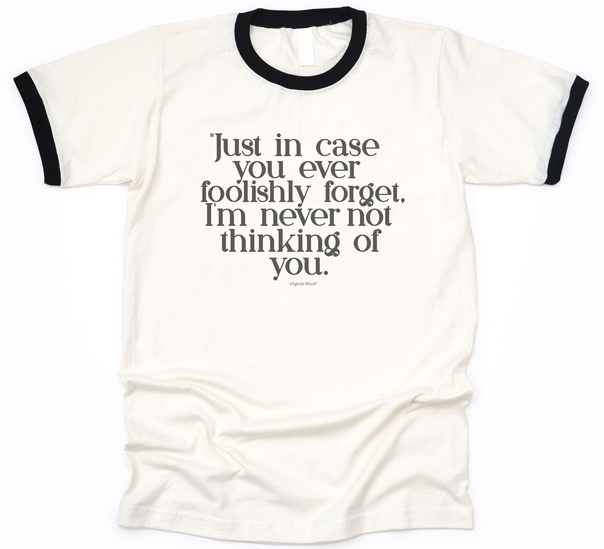 "Just in case you ever foolishly forget; I'm never not thinking of you." - Virginia Woolf quote tee.